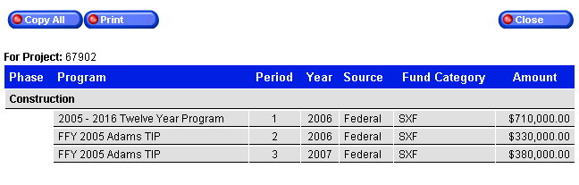 program information, funding sources, funding categories and actual amounts.